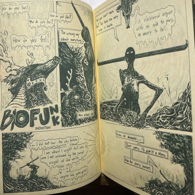 These are stories which reward engagement and dissection, no line or letter is placed in vain. We trust the reader to be able to discern when one story ends and another begins by recognizing changes in artstyle and subject without fanfare, to engage with every page and immerse themselves in the experience of jumping through truly unique realms of imagination and speculation, to not set genre expectations or seek familiar tropes. We believe unanswered questions can only make your mind stronger.